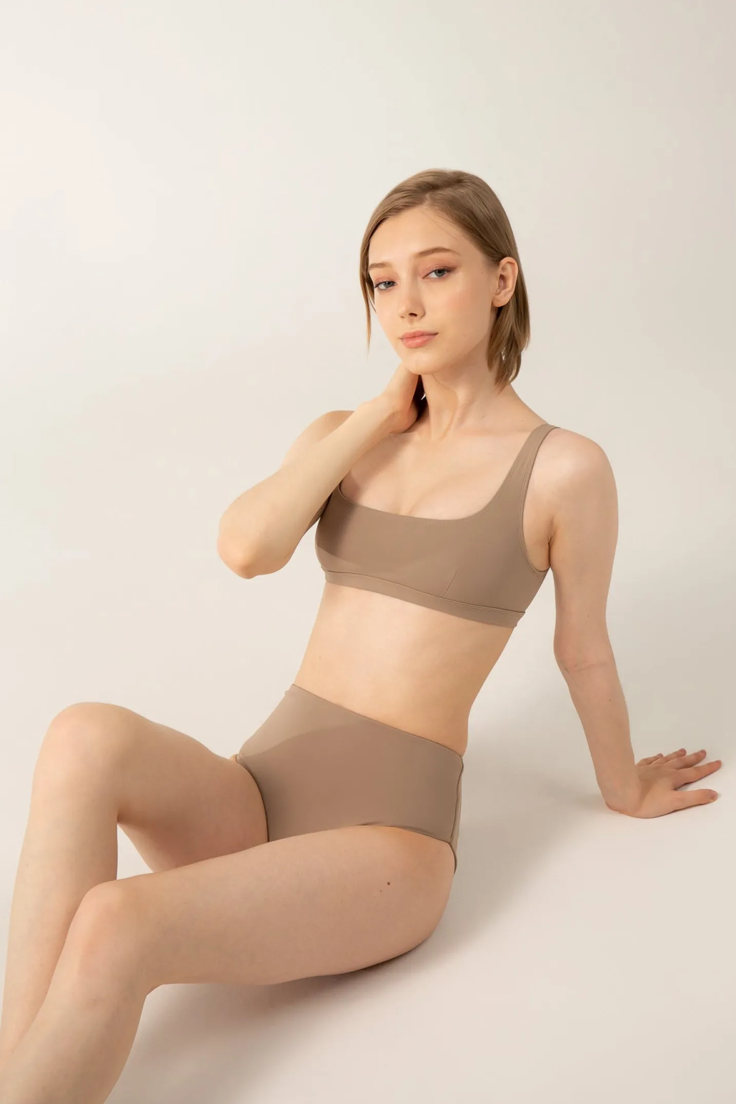 A classic two-piece bikini set that features a square neckline and chic high waisted brief with medium coverage. Mindfully cut from 100% recyclable ECONYL® which is regenerated nylon from waste that would otherwise end up in landfill or the ocean. Stretchy and body-contouring fit. Wear alone or pair with Lily Nipple Covers.