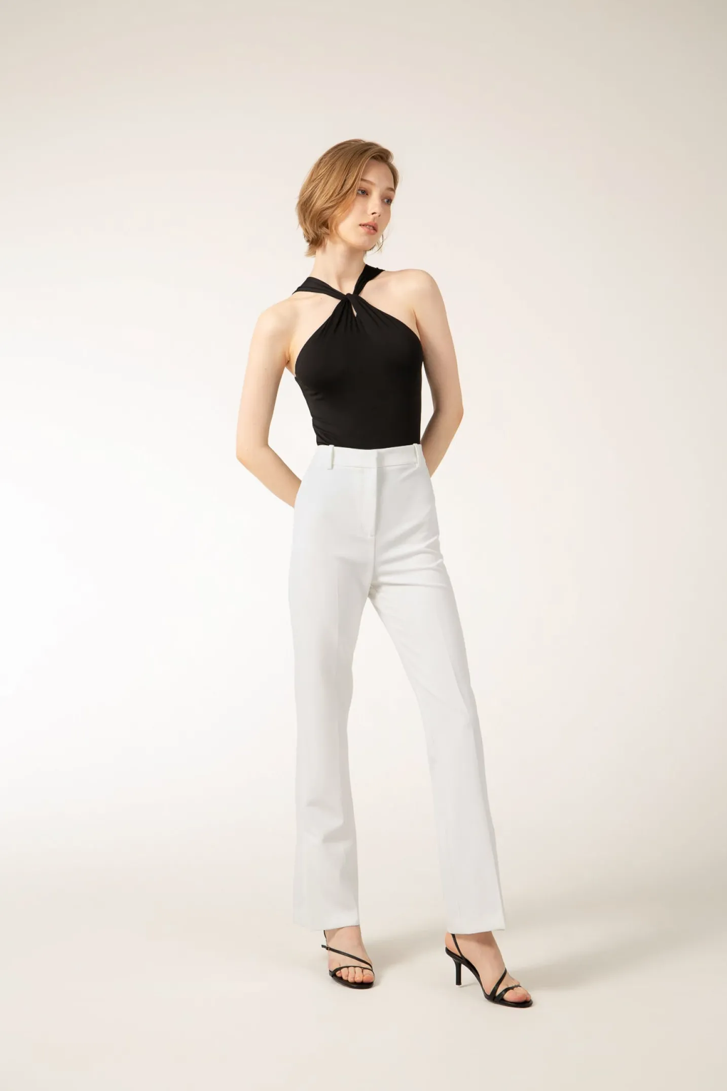 A swim-friendly bodysuit with a twisted halter neck design and seamless brief cut.