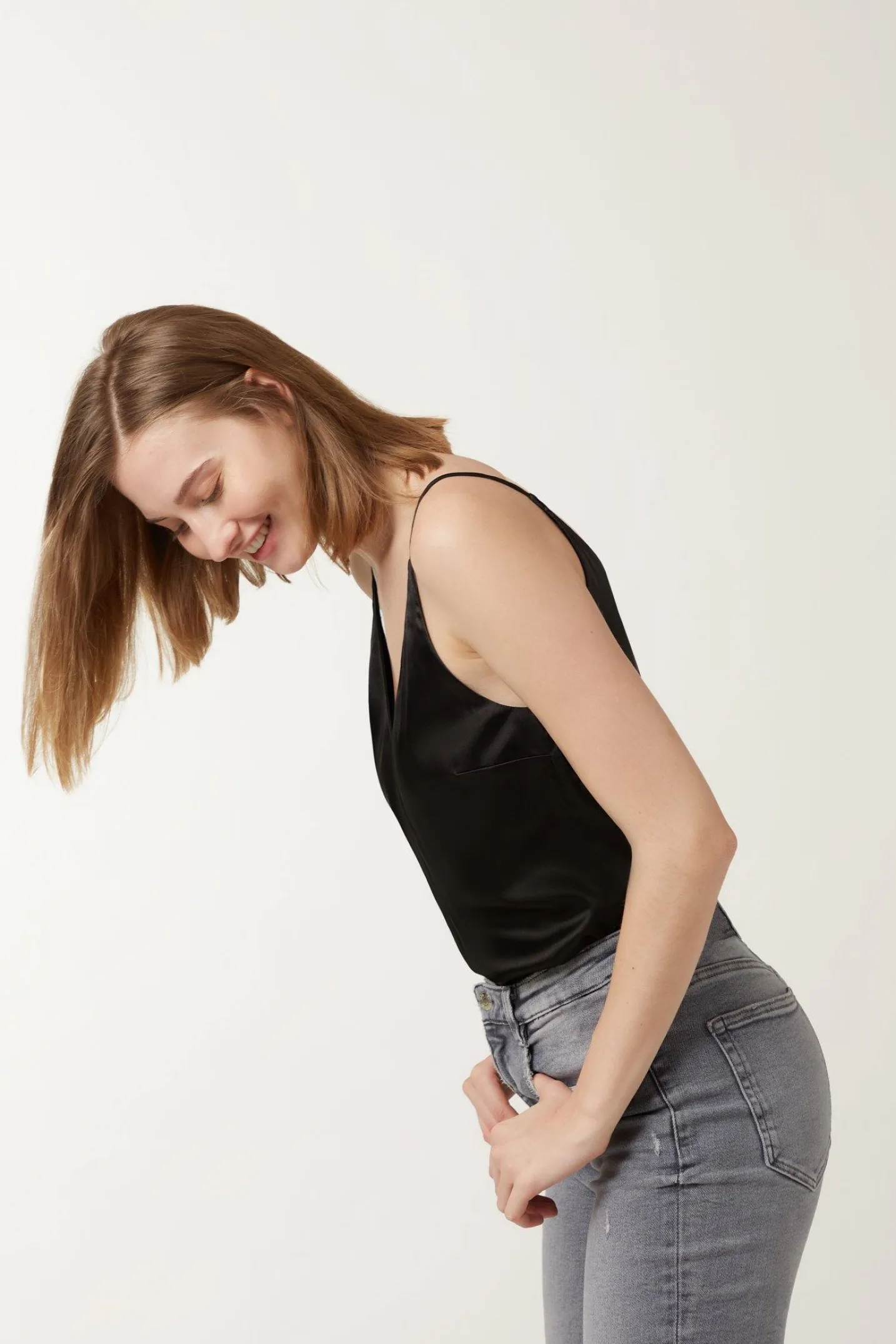 Gentle, soft, and gracefully beautiful— GINA is draped to fit your body with a dual-fabric design. Featuring spaghetti straps and a v-neckline, GINA is a camisole bodysuit suitable for business and casual.